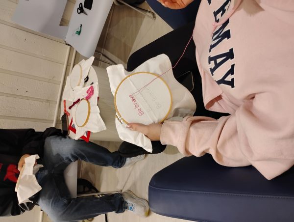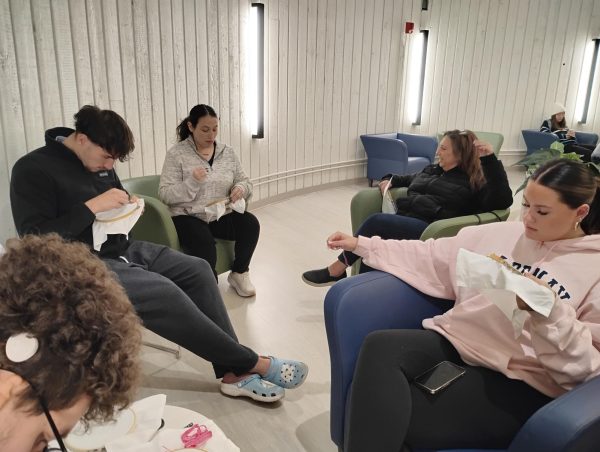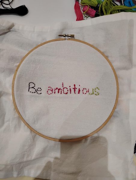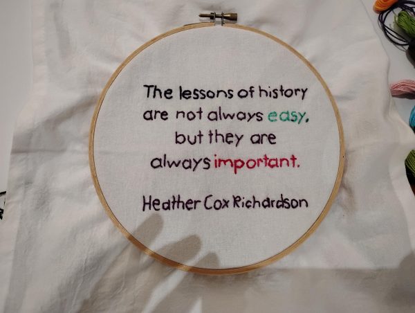 On Oct. 23, about a dozen students and faculty came together in the Wellness Center to work on individual quilt squares with inspiring messages each participant chose ranging from things like Be Ambitious to Long Live the Republic.